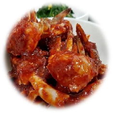 | キムチのたれに漬け込んだワタリガニです。殻ごと、啜るようにお召し上がりください。 |